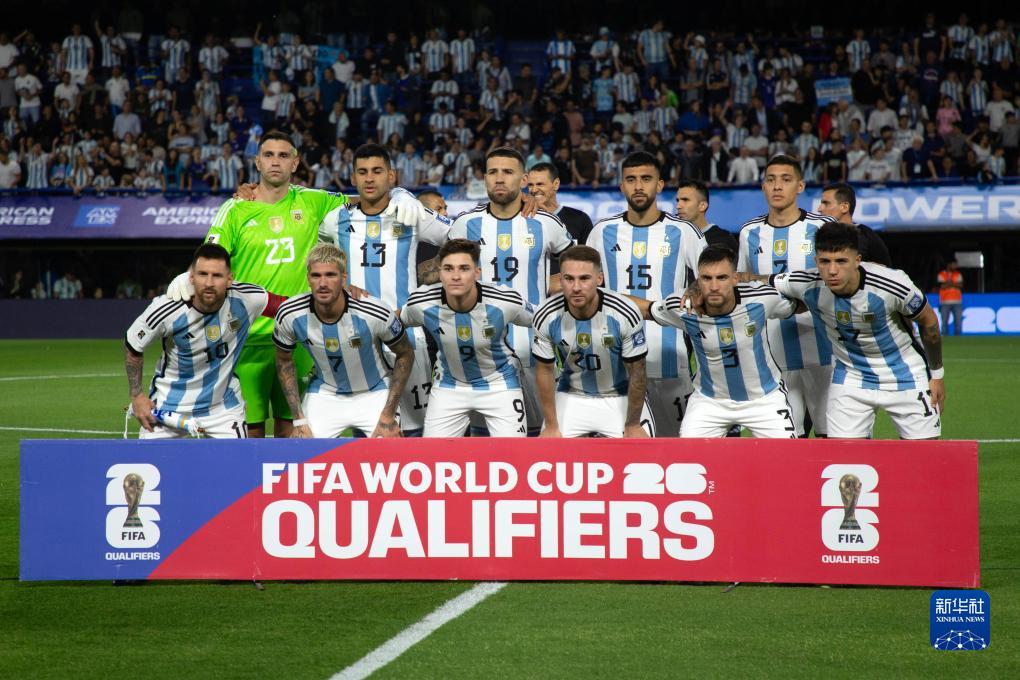 11月16日,阿根廷队首发球员在赛前合影。新华社发(马丁·萨巴拉摄)