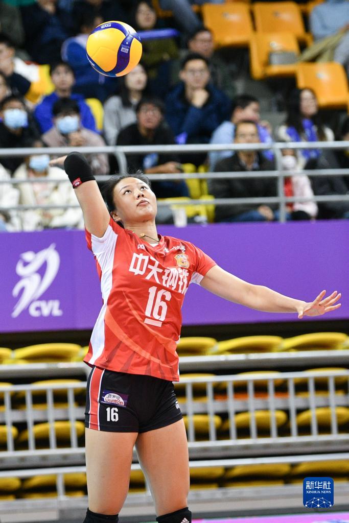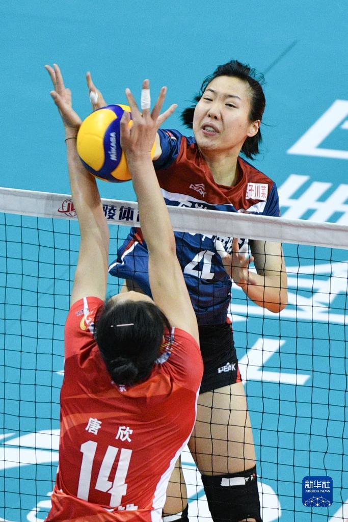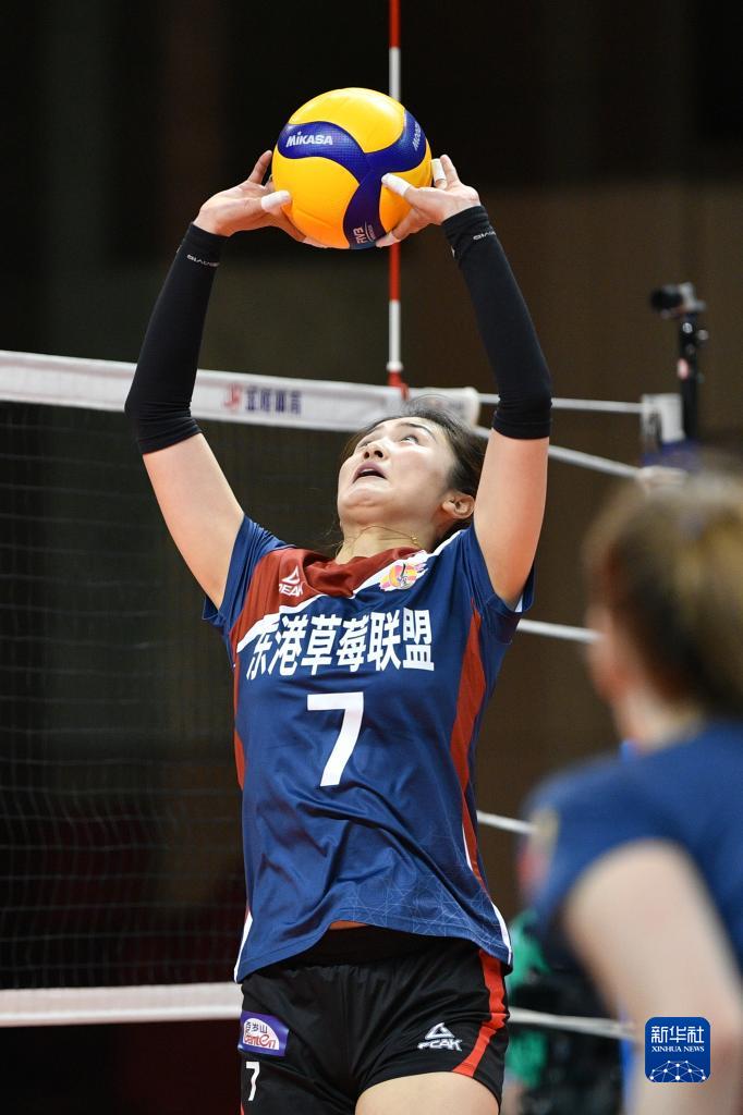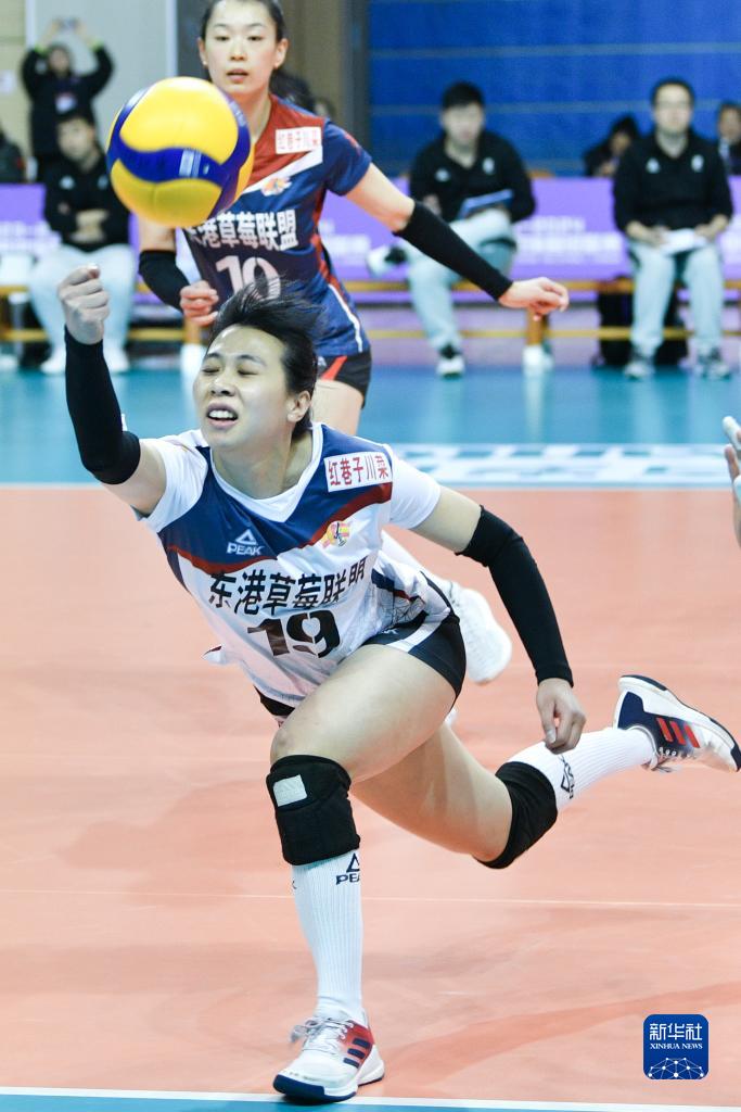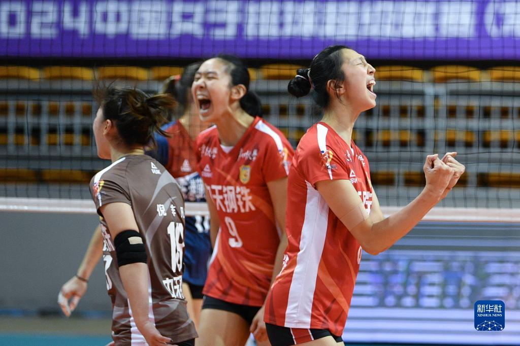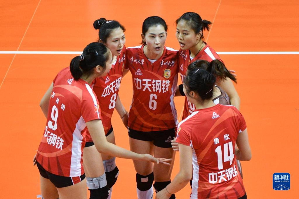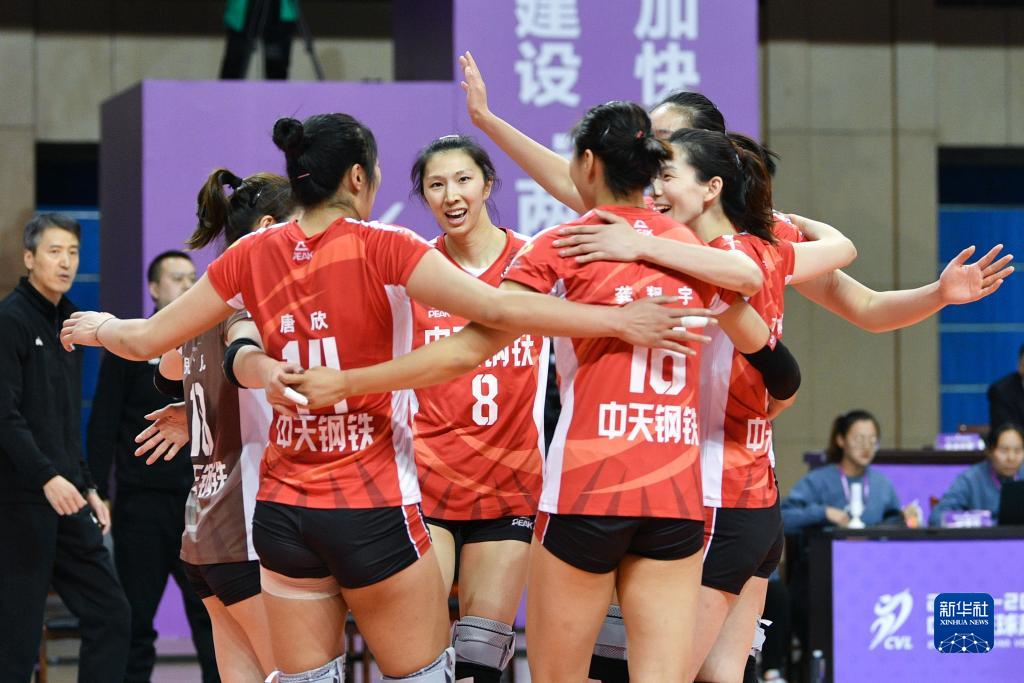 当日,在江苏常州举行的2023-2024赛季中国女子排球超级联赛第一阶段(小组赛)B组第五轮比赛中,江苏中天钢铁队主场以3比1战胜辽宁东港草莓队。