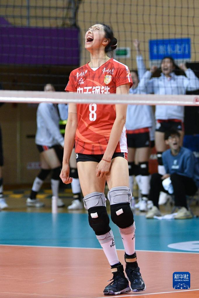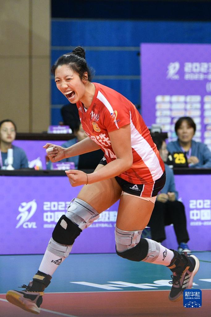 11月18日,江苏中天钢铁队球员吴梦洁在比赛中庆祝得分。新华社发(史康摄)