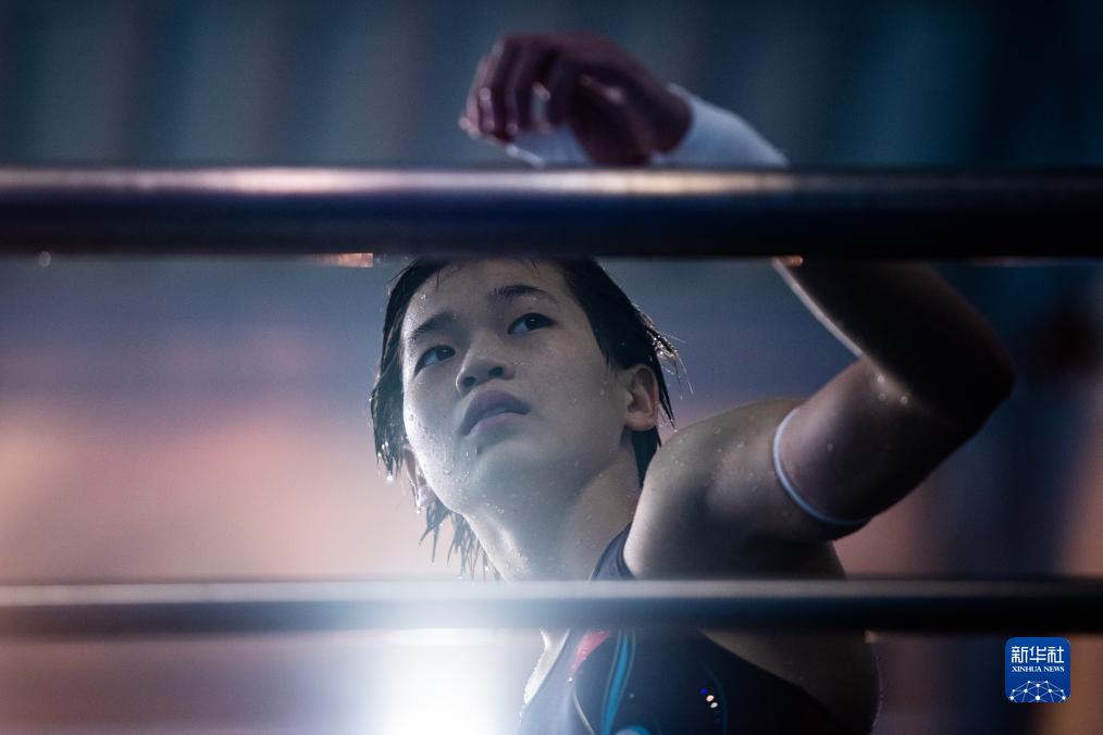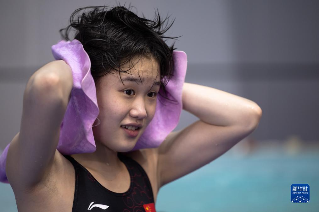 11月22日,广东海印队选手全红婵在比赛前热身。她以427.60分的成绩获得亚军。新华社记者 伍志尊 摄