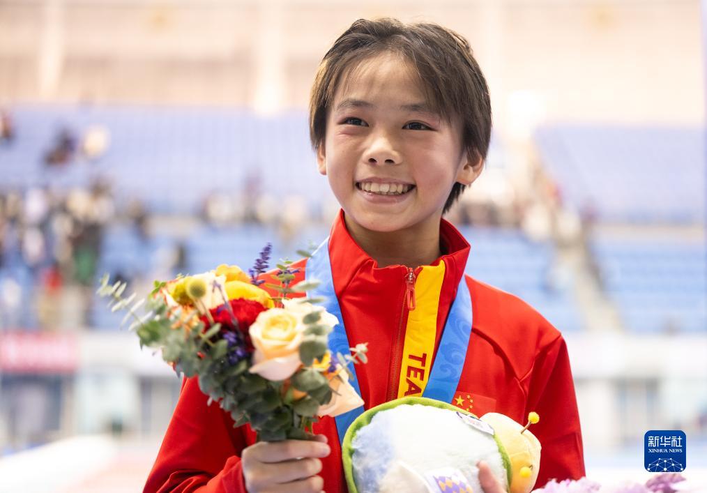 11月22日,广东海印队选手全红婵在比赛后。她以427.60分的成绩获得亚军。新华社记者 肖艺九 摄