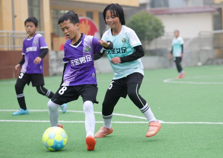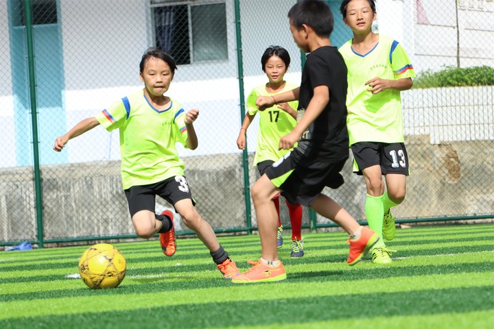 在贵州省毕节市大方县元宝同心实验学校,每天下午放学后,两块运动场便会成为近百名足球小将的天地。完成热身后,他们在教练徐召伟的带领下开始训练,内容包括传球、停球、带球过人等单项技术和对抗赛等。