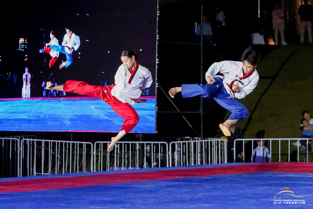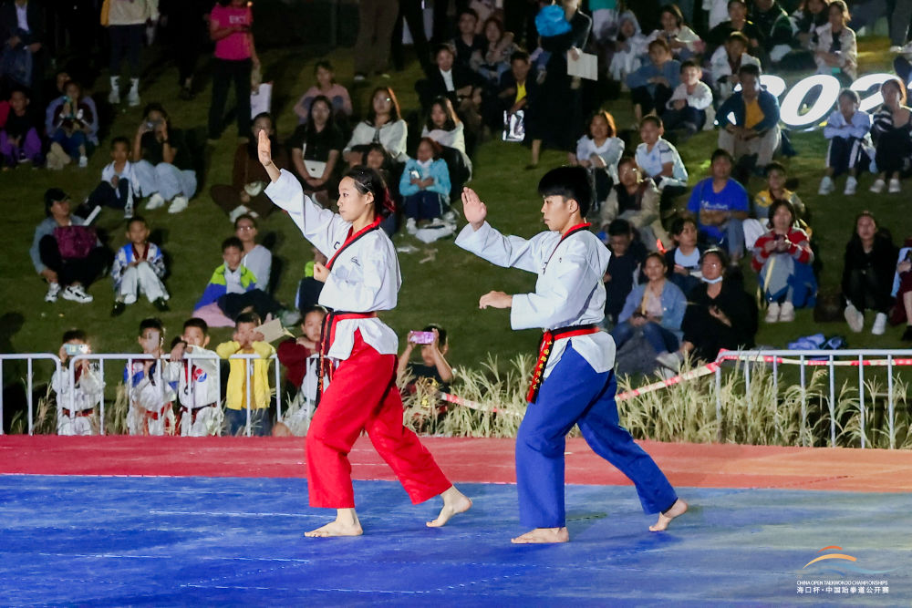 当天进行了传统品势和自由品势项目的角逐。其中,自由品势决赛当晚在“天空之山”海滨驿站赛场进行,是少见的跆拳道户外比赛场地,现场海风徐徐、视野开阔,吸引了众多游客和当地居民观赛。