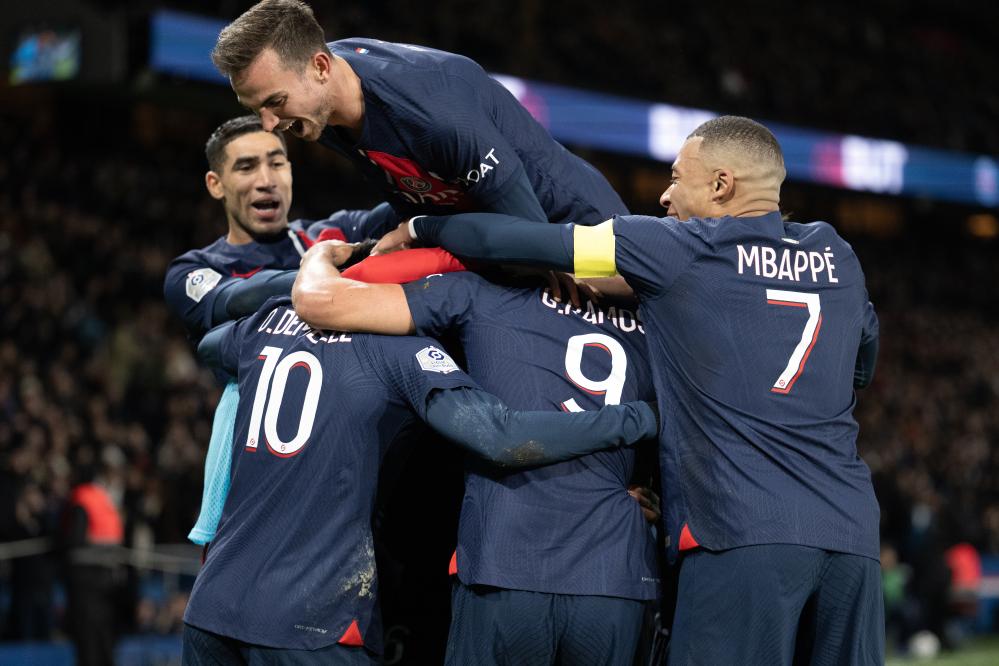 11月24日,巴黎圣日尔曼队球员庆祝进球。新华社发(杰克·陈摄)