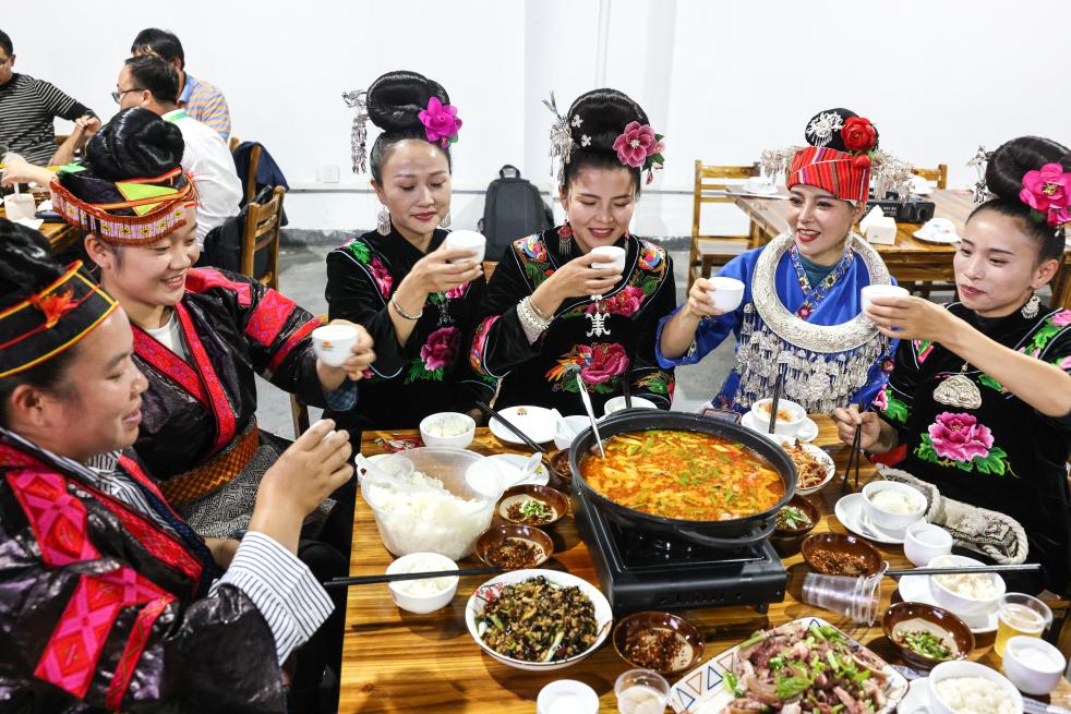 人们在台盘村“球迷食府”内用餐(2023年10月25日摄)。新华社记者 欧东衢 摄