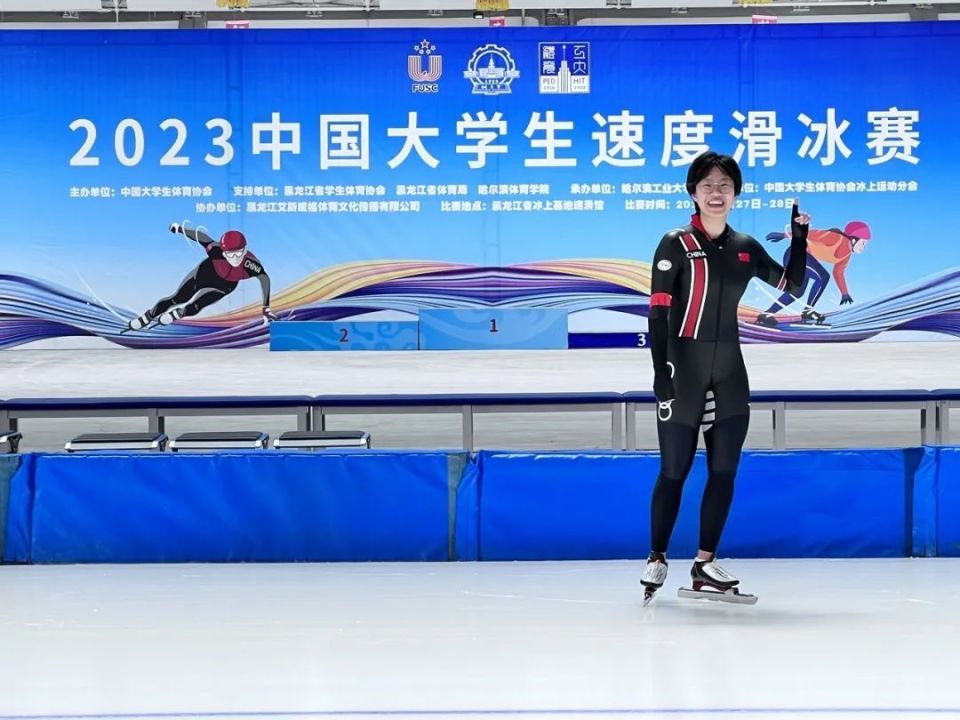 ↑石云姣在2023年中国大学生速度滑冰比赛现场