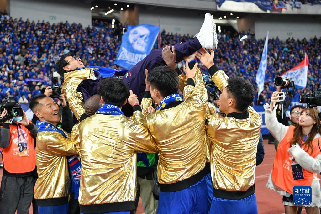 11月25日,上海申花队庆祝夺冠。