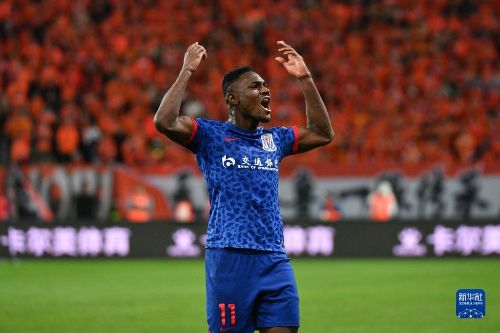11月25日,上海申花队球员马莱莱在比赛中庆祝。