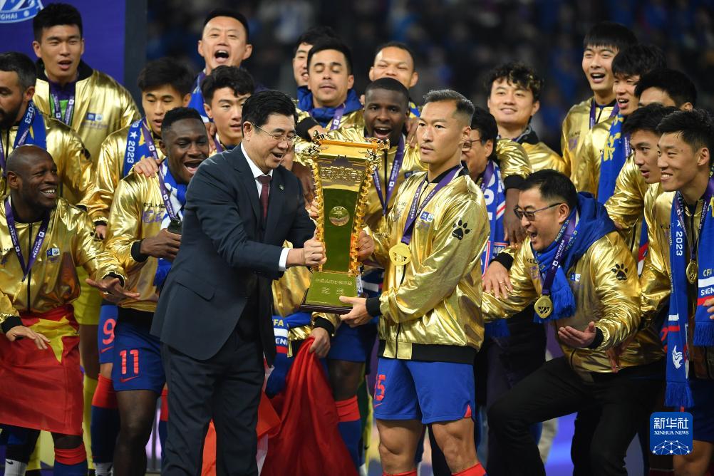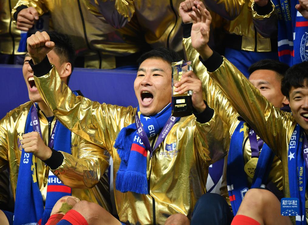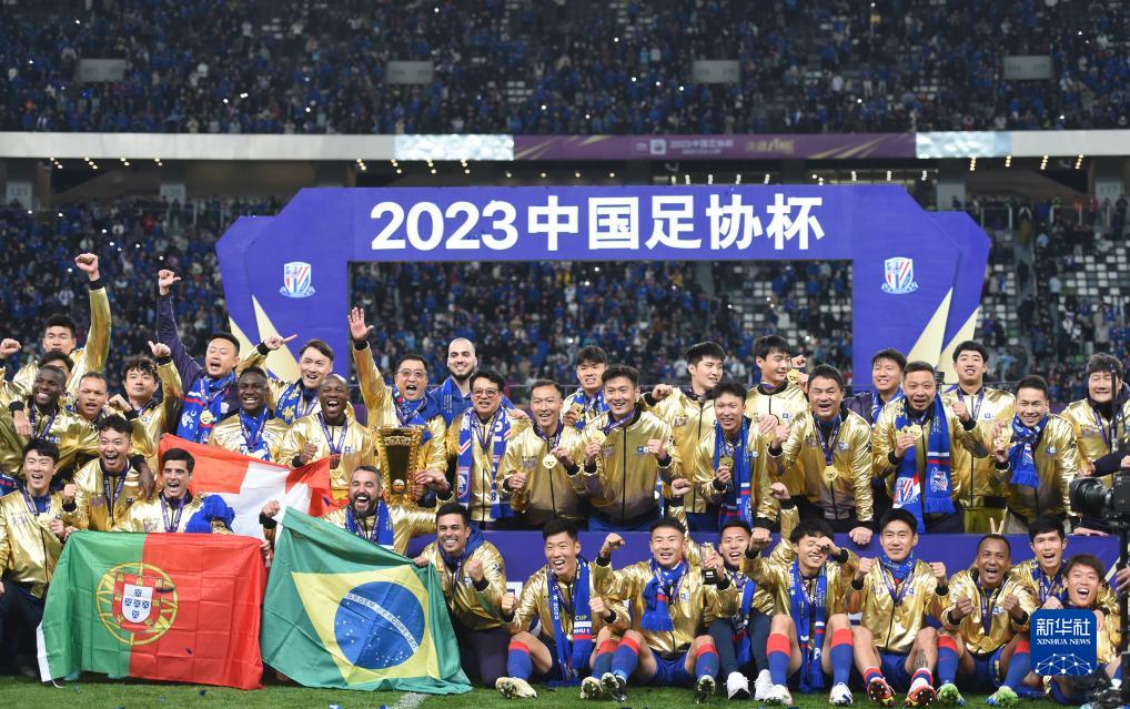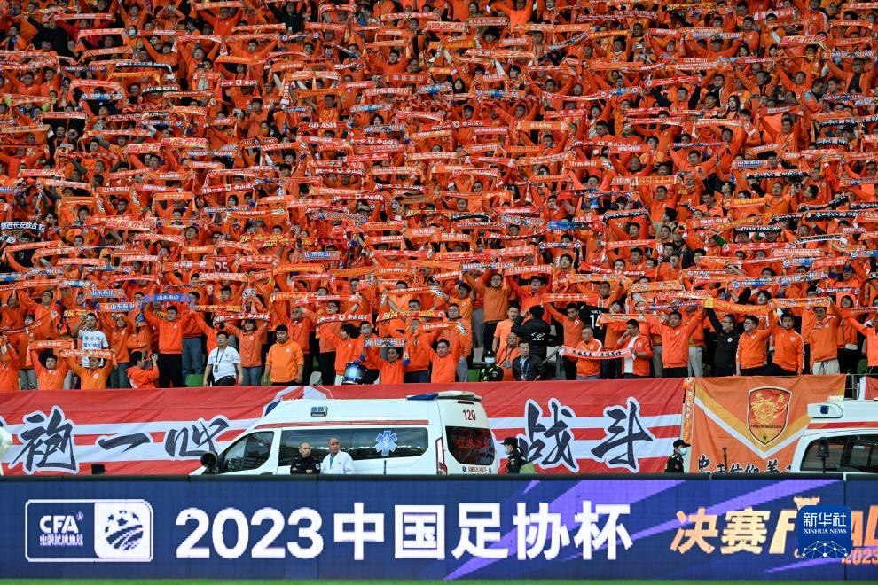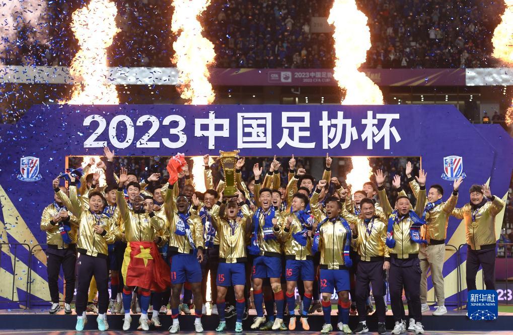 当日,在江苏苏州举行的2023赛季中国足协杯决赛中,上海申花队以1比0战胜山东泰山队,夺得冠军。