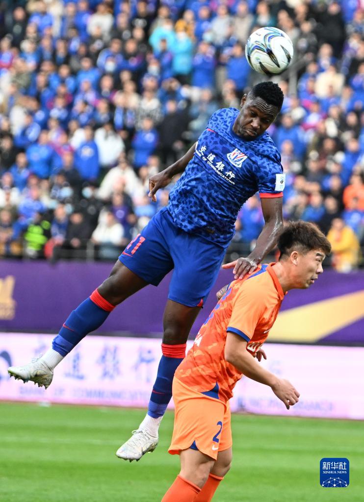 11月25日,上海申花队球员马莱莱(上)在比赛中争顶。