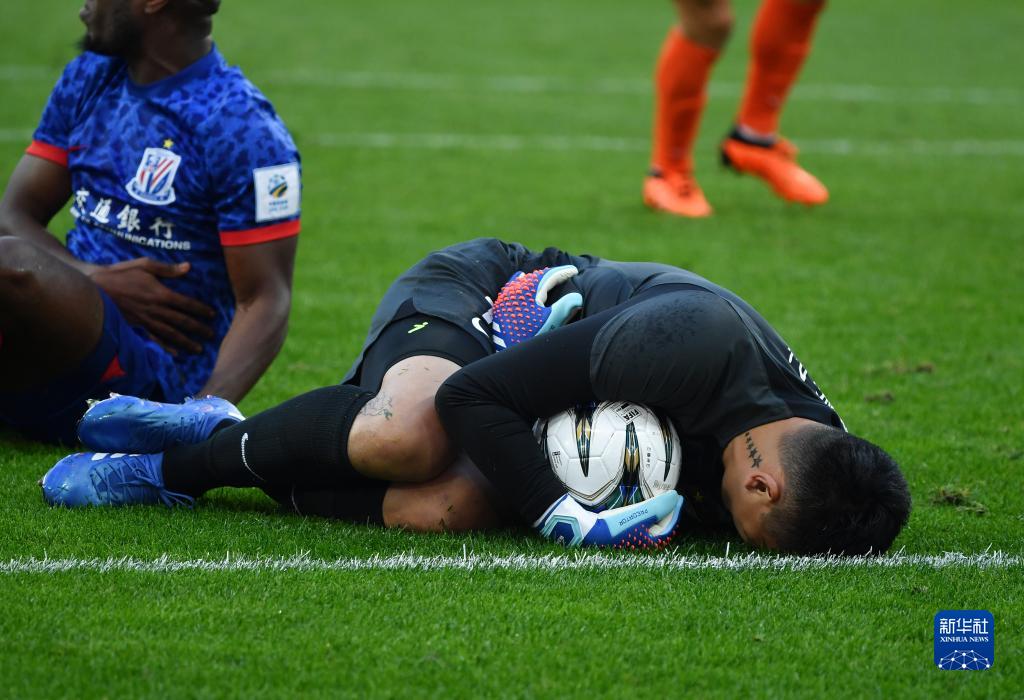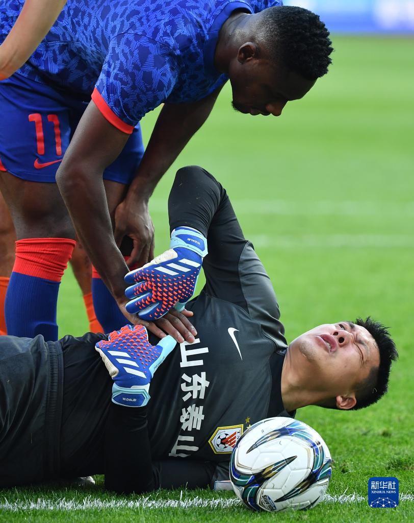 11月25日,山东泰山队守门员王大雷在比赛中倒地。