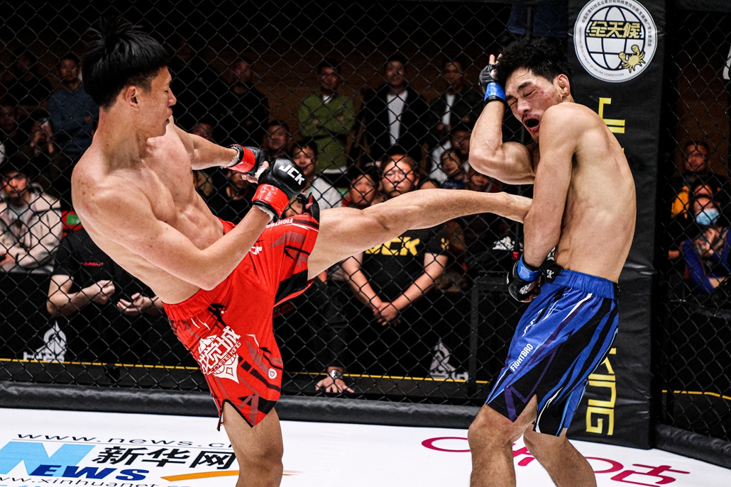 李福耀主动抱摔并尝试完成断头降服,虽然没有成功,但比赛节奏已经牢牢把握在自己的手中。最终鏖战三回合李福耀一致判定胜杨国旭。全场比赛李福耀的有效打击数遥遥领先。
