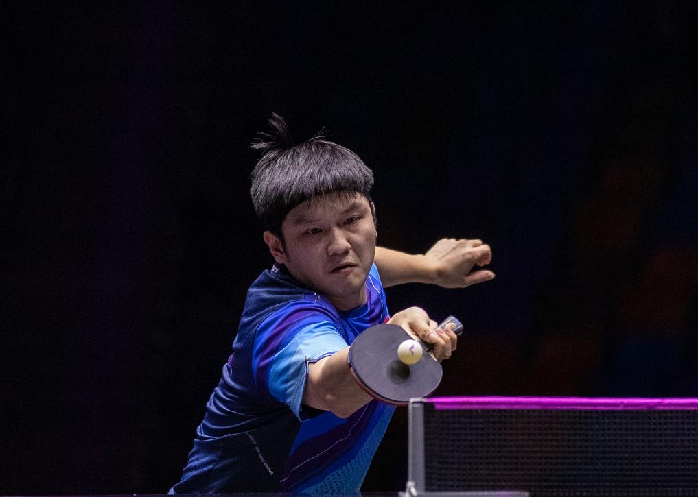 10月29日,樊振东在2023世界乒乓球职业大联盟(WTT)法兰克福冠军赛中。新华社记者张帆摄