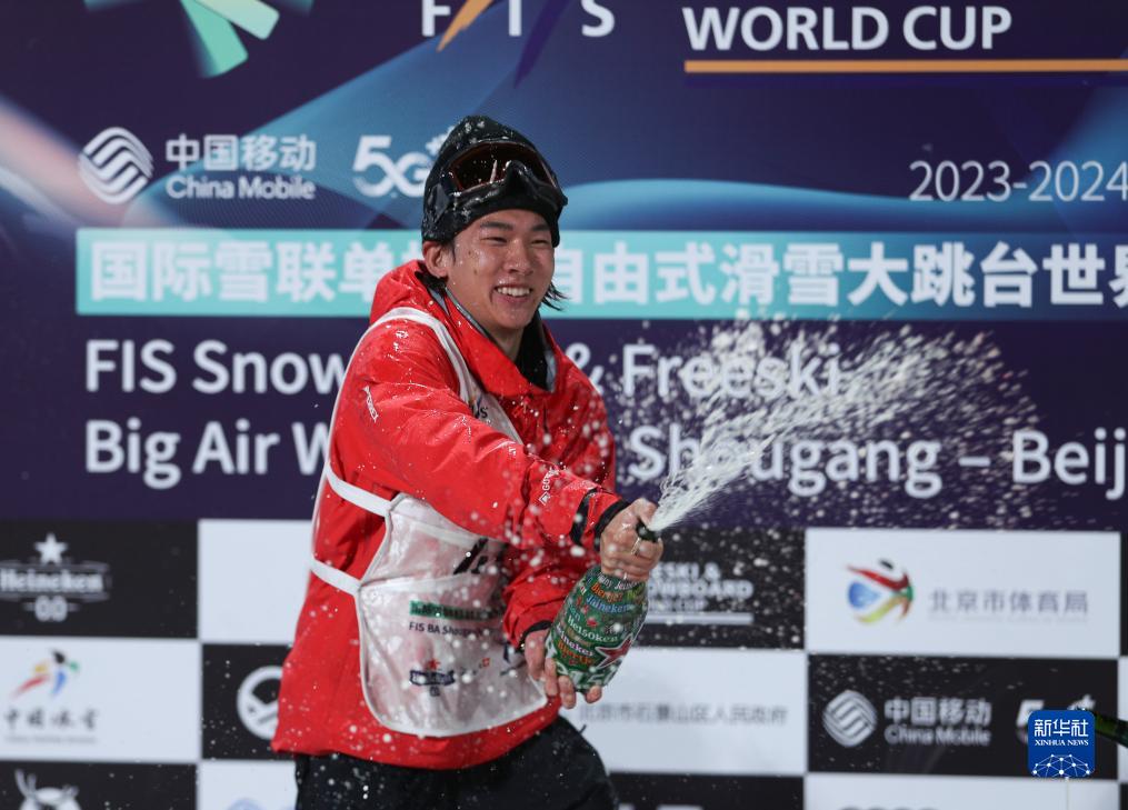 当日,在北京首钢滑雪大跳台举行的2023-2024赛季国际雪联单板及自由式滑雪大跳台世界杯单板滑雪大跳台男子组决赛中,中国选手苏翊鸣以184.50分夺得冠军,日本选手木俣椋真以180.75分获得亚军,日本选手木村葵来以175.75分获得季军。