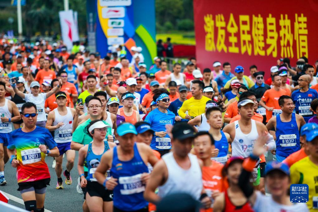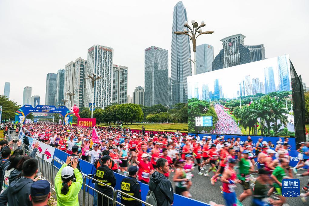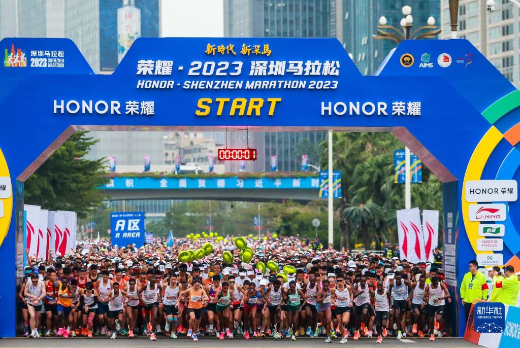 当日,2023深圳马拉松在深圳市民中心鸣枪起跑,共有约2万名选手参赛。