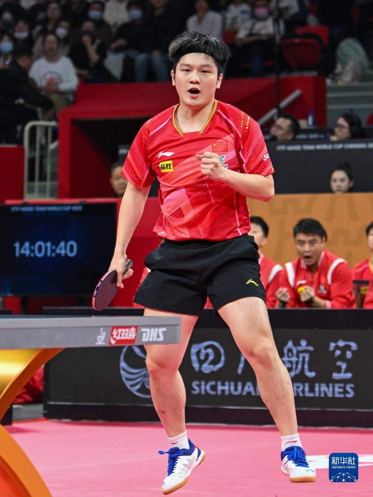 当日,在成都举行的2023年国际乒联混合团体世界杯第一阶段比赛中,中国队以8比0战胜中国香港队。