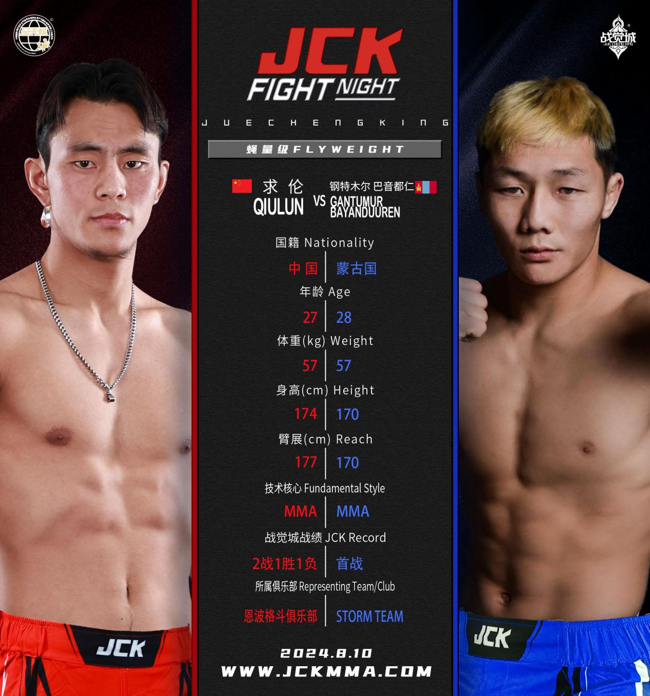 求伦,藏族选手,年龄27岁,职业战绩:30战19胜,在JCK战觉城2战1胜,曾经首回合TKO蒙古国选手詹其格宁布,上一场比赛告负给扎哈尔·别克努尔。