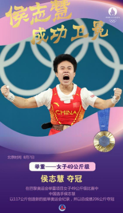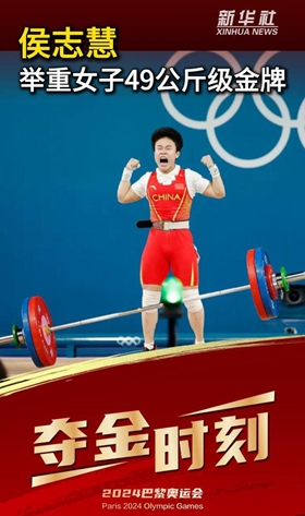 夺金时刻:中国选手侯志慧夺得举重女子49公斤级金牌