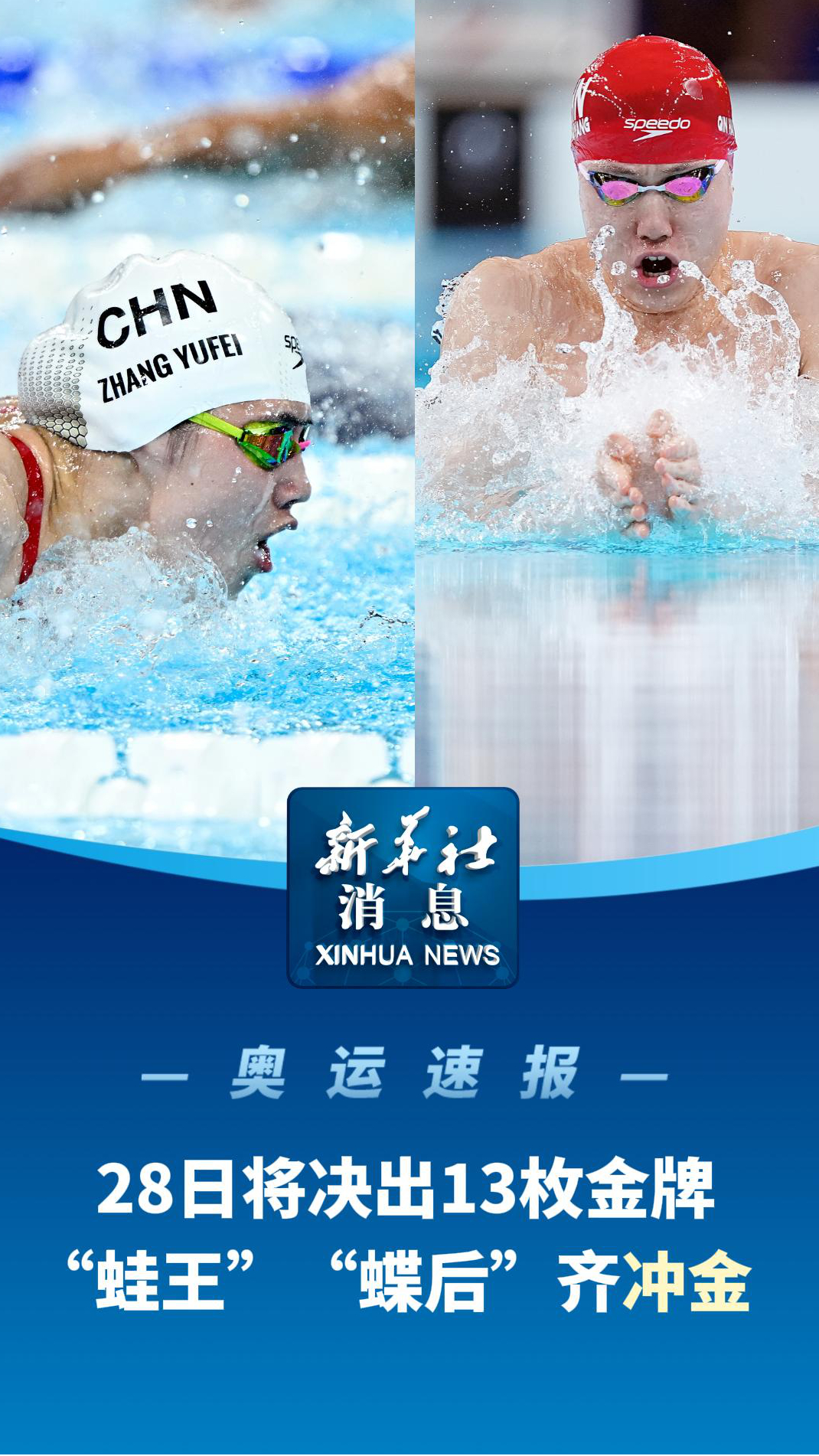 新华社消息·奥运速报|28日将决出13枚金牌 “蛙王”“蝶后”齐冲金