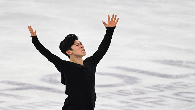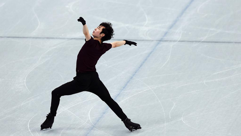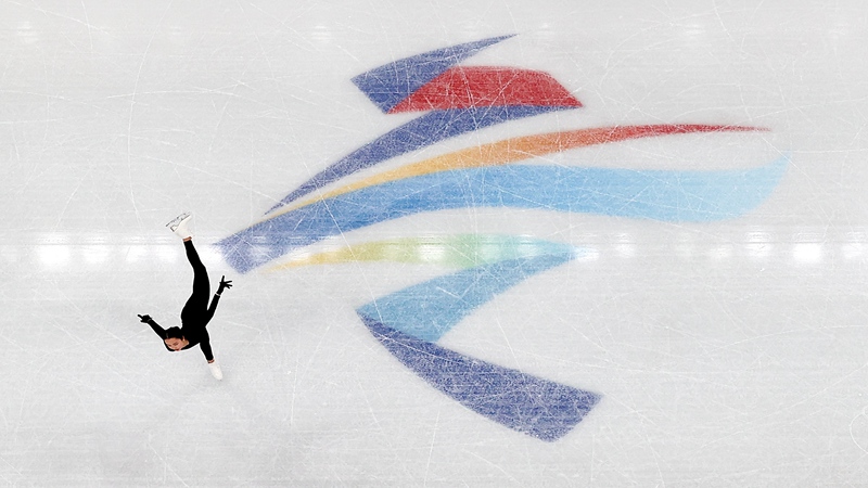 29日晚,三届花滑世锦赛冠军、美国选手陈巍出现在首都体育馆进行上冰训练。
