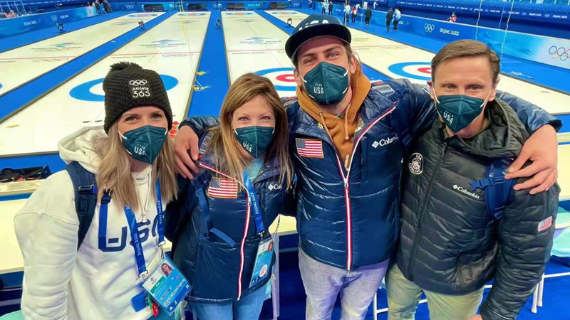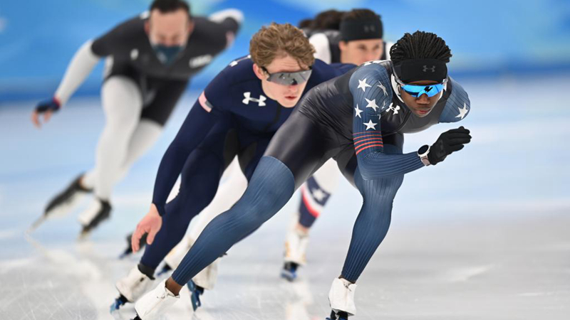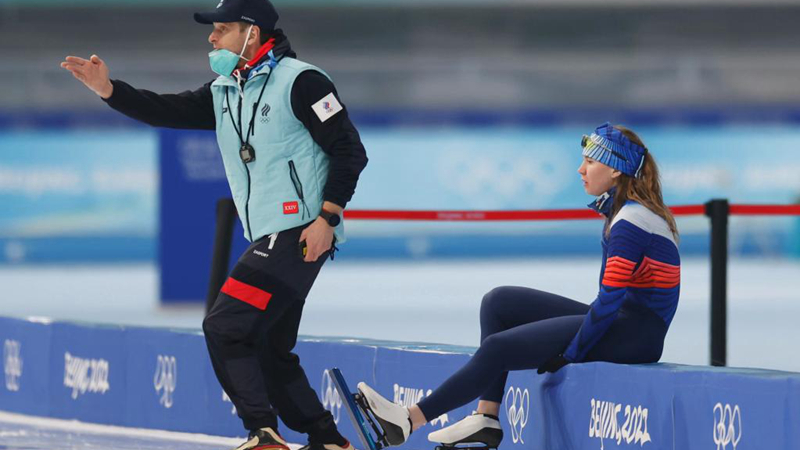 中国速滑队中长距离组的宁忠岩、王浩田、徐富、廉子文等4名选手和教练王秀丽出现在“冰丝带”。