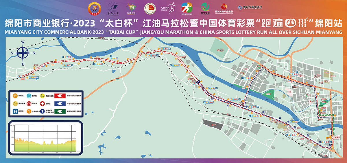 绵阳市商业银行·2023“太白杯”江油马拉松暨中国体育彩票“跑遍四川”绵阳站于4月9日鸣枪起跑,赛事设置全程马拉松、半程马拉松、迷你马拉松三个项目。本次比赛赛道从江油市体育中心出发,前半程在江油市区,后半程在龙凤镇政府处返回,赛道融入了李白故里文化元素,同时也突出了江油城市地标,设立美食补给站、特色加油站合计近20处,跑步爱好者们可以体验到江油的城市魅力以及沿途自然美景。
