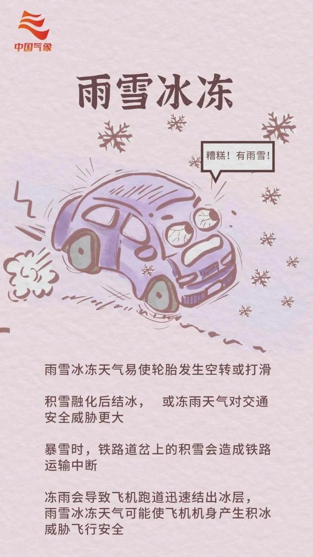 孙军提醒,雨雪天气易导致路面湿滑、积雪、结冰,降低能见度,对交通出行比较不利,其中,甘肃中东部、陕西、山西等地发生道路积雪和结冰的风险高,湖南、江西、浙江、广西等地发生道路积水的风险高,建议加强交通安全管理。