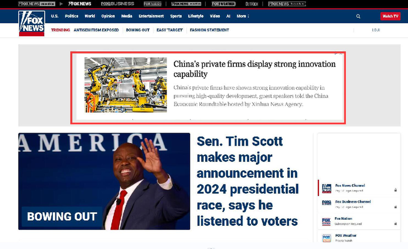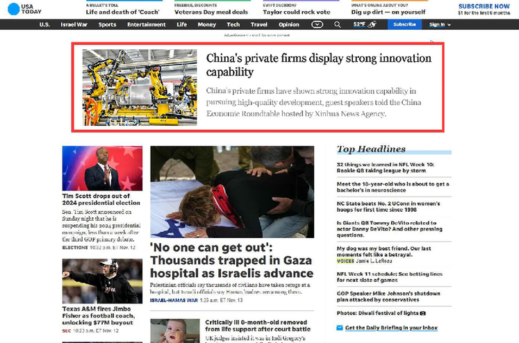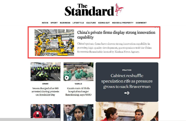 环球先驱报、LINE TODAY、菲律宾时报、新奥尔良太阳报等80余家海外媒体全文转发新华社英文稿件《新华全媒头条:民营经济应变克难 助力中国经济高质量发展》(Xinhua Headlines: Heavyweight policy boost for China's private economy)。美国《福克斯新闻》、《今日美国》、英国《独立报》、《经济学人》、菲律宾《星报》等全球主流媒体网站,在重点位置展示“中国经济圆桌会”相关报道。