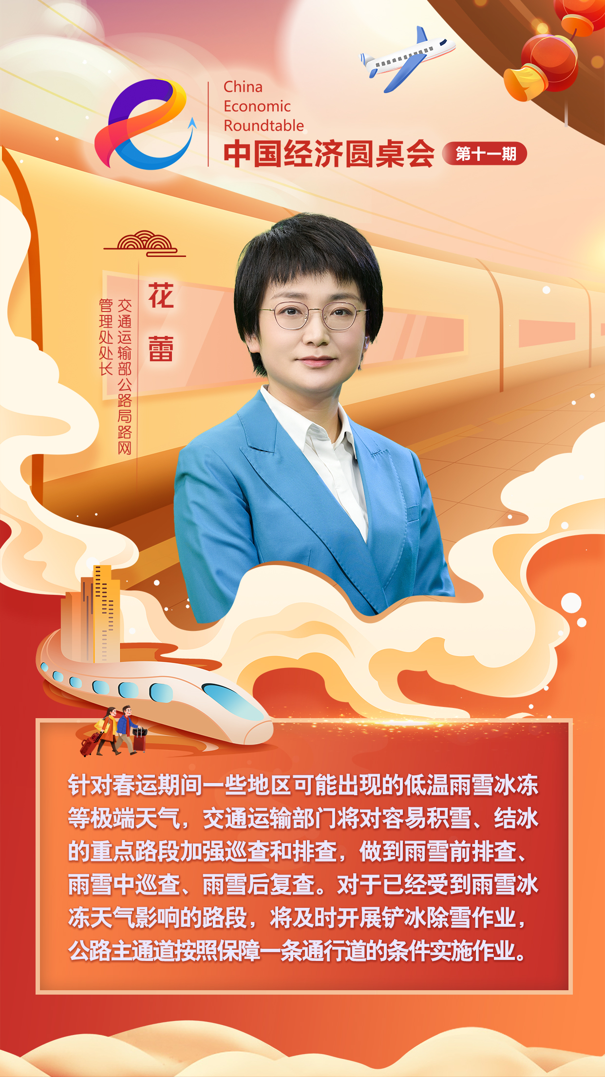 新华社推出“中国经济圆桌会”大型全媒体访谈节目,邀请交通运输部运输服务司副司长王绣春、中国民航局运输司副司长商可佳、国铁集团客运部副主任朱文忠、交通运输部公路局路网管理处处长花蕾围绕今年春运期间如何让百姓走得好、走得畅进行深入探讨。