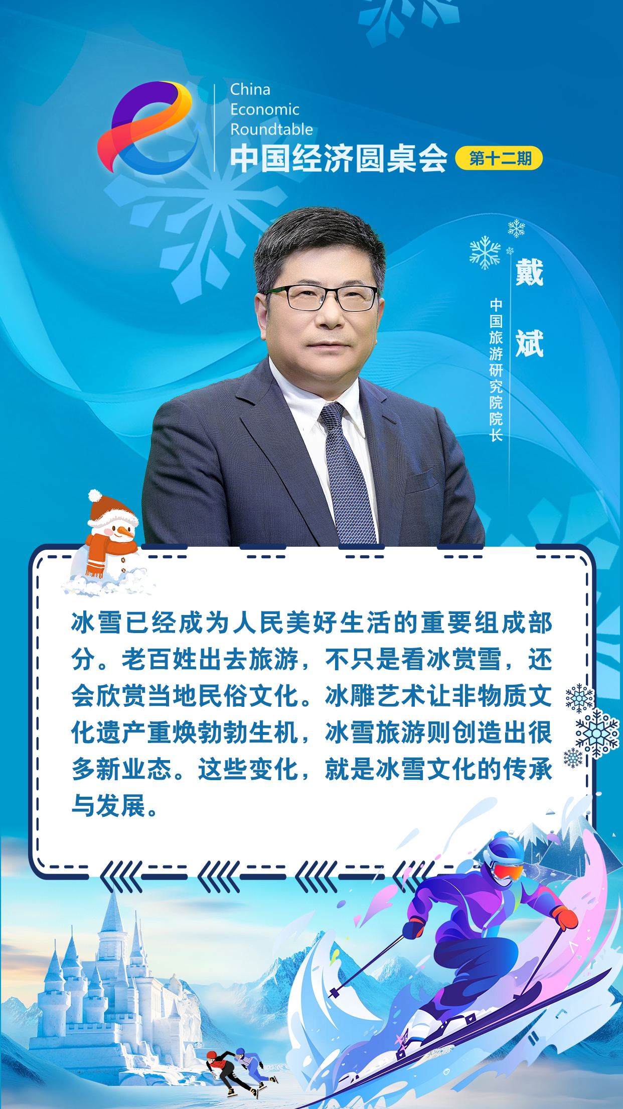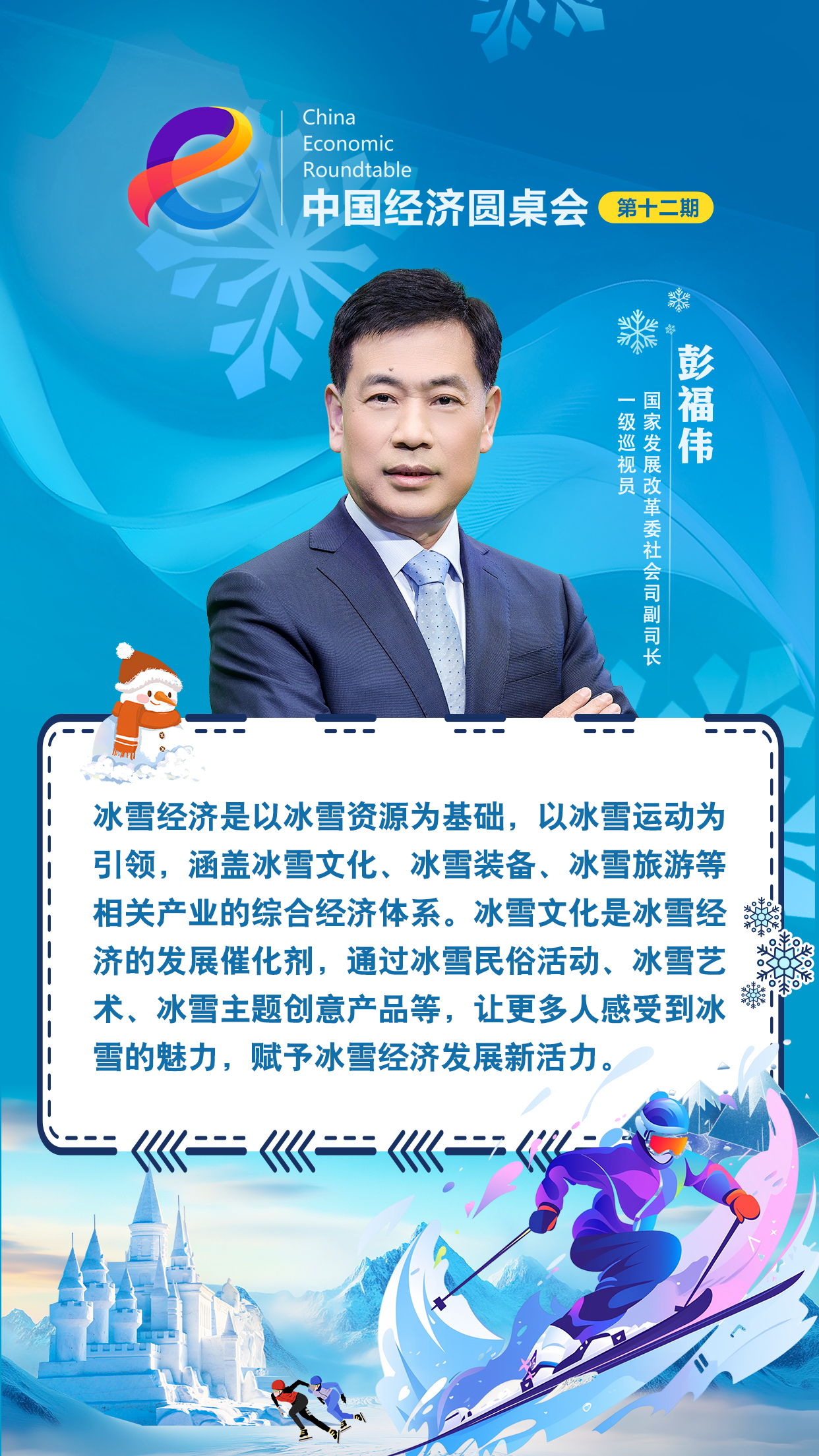 新华社推出“中国经济圆桌会”大型全媒体访谈节目,邀请国家发展改革委社会司副司长、一级巡视员彭福伟、国家体育总局经济司副司长艾郁、黑龙江省文化和旅游厅副厅长齐斌、中国旅游研究院院长戴斌共同探讨冰雪经济。