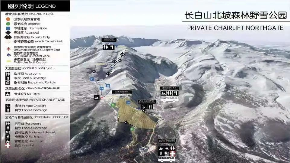 长白山北景区高山森林野雪公园坐拥有世界级的粉雪资源,位于长白山北景区国家高原冰雪训练基地内,是国内最大的高山森林野雪公园。依托长白山独特的山体走向跨越千米海拔,该公园面积约20万平方米,垂直落差1000米,野雪长度7.5公里,在世界野雪滑雪公园中位列前茅,是目前国内最大的森林越野滑雪公园,也是国内唯一每年雪期可持续至次年五月的野雪场,主要面向具备一定驾驭高山野雪水平的单双板滑雪发烧友。
