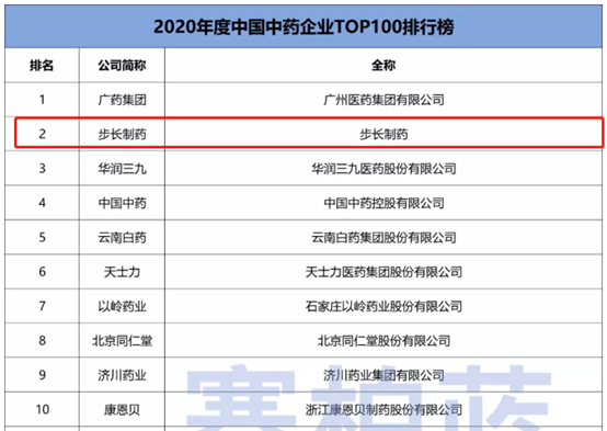 步长制药再度登榜2020年度中国中药企业TOP100