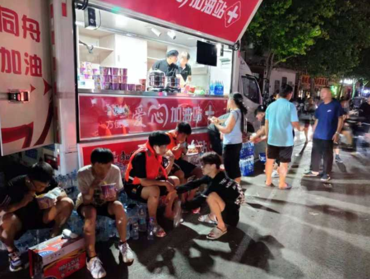 暴雨在河南新乡下了三天,全国人民的心就悬了三天。在这几天,一辆写着“风雨同舟、河南加油”以及“爱心加油站”的“急难救助车”,涉水开进了新乡,停在河南师范大学附近。这是一辆厢式货车,侧面打开,就是可以烧水煮面的操作台。一位救援人员看到有热气腾腾的香辣牛肉面,过来吃了一碗,又累又乏的他对车上的人说,这是他这几天来吃得最畅快的一餐,想要付钱,车上的人探身指指车上红底白字的爱心加油站横幅,说这是支援救灾的,不收钱,好吃的话给辛苦的救灾兄弟们捎上两箱,救援人员有些意外,感激地说了声“谢谢啊!”,就继续投入到救灾行动当中去了。