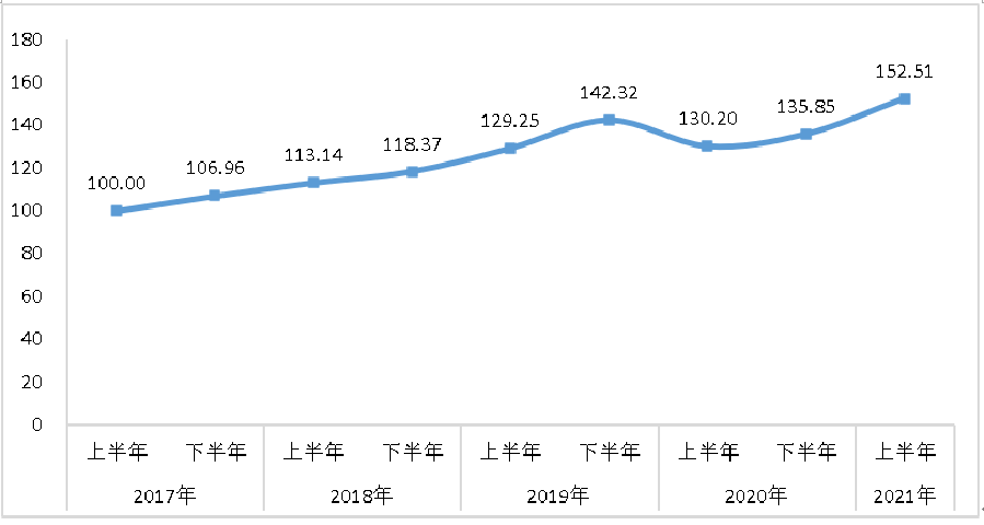茅台品牌传播力指数,反映一定时期茅台品牌传播的总体水平。2021年上半年,茅台品牌传播力有大幅回升,指数值达到152.51点。