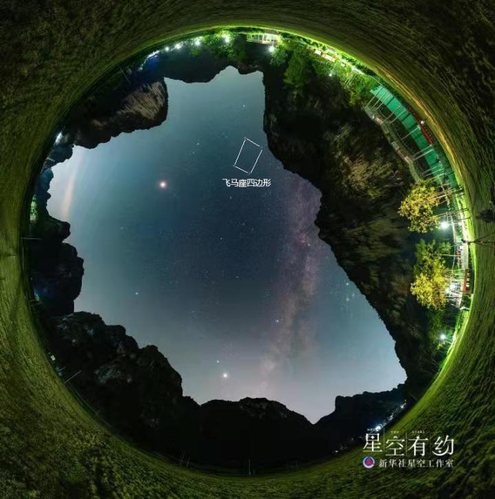 新华社天津10月17日电(记者周润健)金秋十月,入夜后,热闹的夏季银河已渐渐西垂。秋凉如水的夜晚,如果天气晴好,有兴趣的公众眺望夜空,会发现在南方中天,有四颗星星以近乎“正方形”的组合出现,这就是北半球秋天标志性的“秋季四边形”,也称“飞马座四边形”。