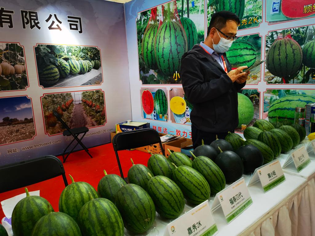 中国天津种业振兴大会及同期举办的2021天津国际种业博览会上,各类蔬菜瓜果琳琅满目。展位上,几个七八十斤重的大西瓜中间,一个只有四五斤重的小西瓜让瓜农和游客驻足围观。