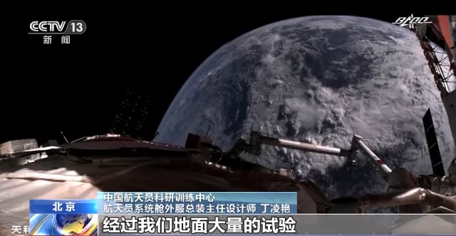中国航天员科研训练中心航天员系统舱外服总装主任设计师 丁凌艳:我们舱外航天服是一个小型的飞行器,然后它可以为航天员提供压力防护、热防护以及氧气等生命保障的条件,我们舱外服是可以提供航天员在舱外活动8小时的这个生命保障功能,这次是我们舱外服A第三次出舱使用,舱外服C是首次出舱,经过我们地面大量的试验,舱外服A和舱外服C都能满足我们这次出舱使用的要求。