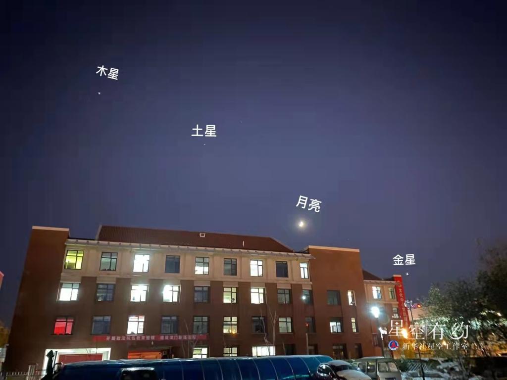 进入12月,金星、土星和木星在日落后前半夜排列在西南方天空。“12月7日至9日,多情的‘月姑娘’会依次‘拜访’这三颗亮星。届时只要天气晴好,这场浪漫的‘星月童话’肉眼清晰可见。”宋媛媛说。