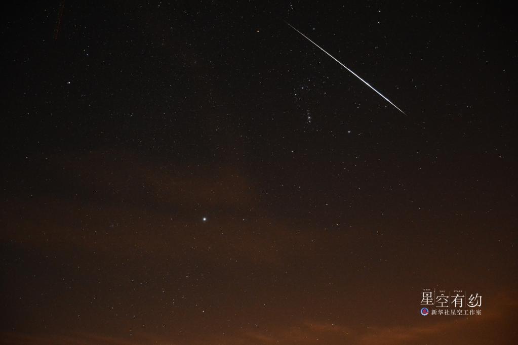 天津市天文摄影爱好者陈若瑜2018年12月15日凌晨在天津市宝坻区八门城镇附近拍摄的双子座火流星。(本人供图)
