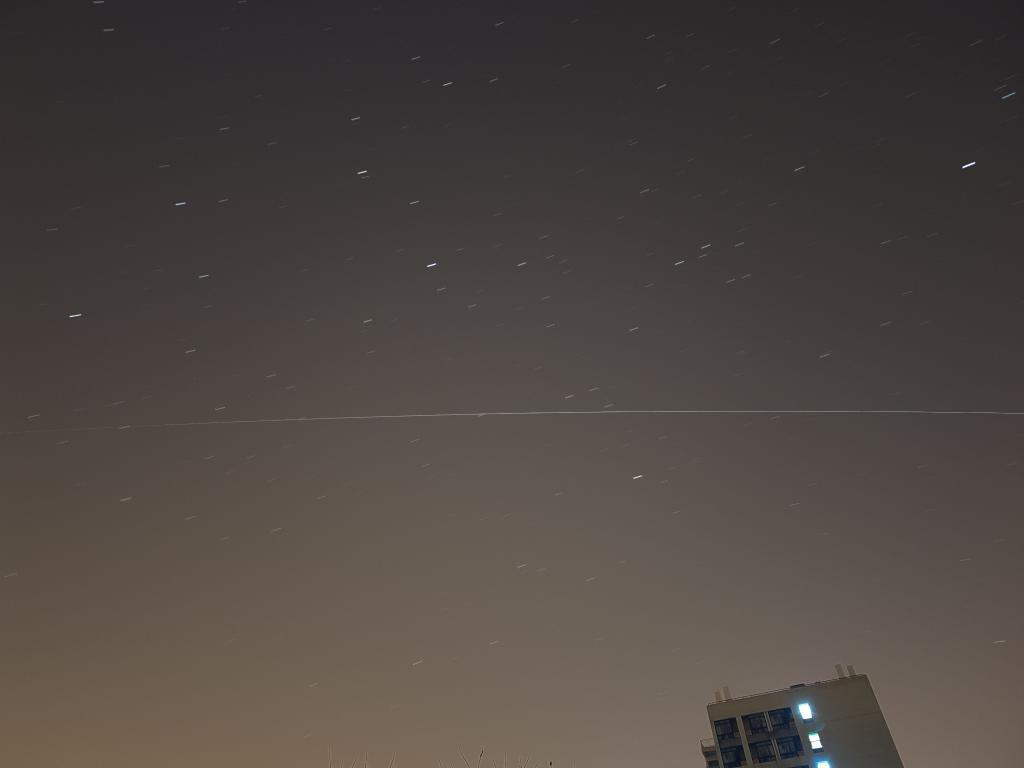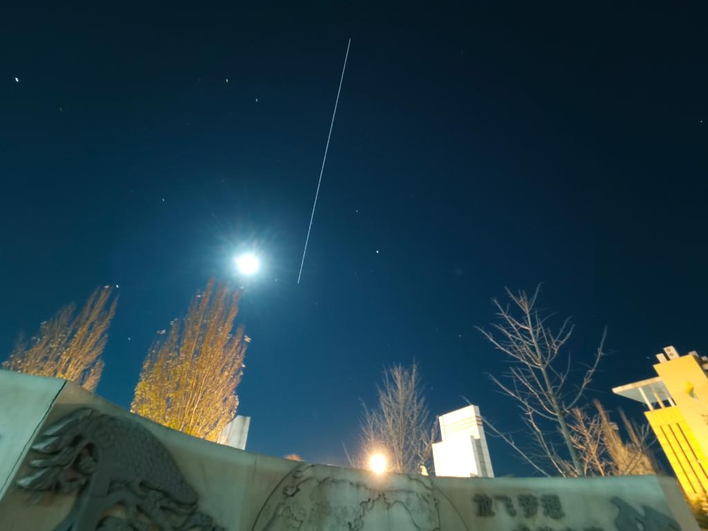 中国空间站飞过北京市昌平区前锋学校上空。新华社客户端网友2388300 摄