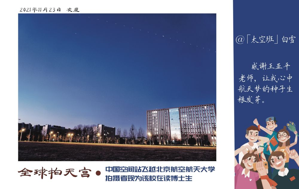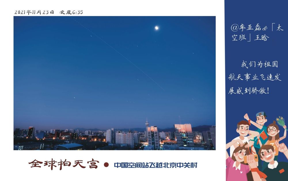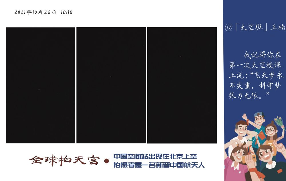 中国空间站与中国传媒大学“合影”。网友进近你好 摄