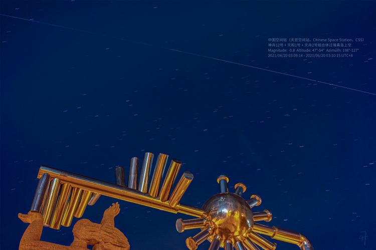 中国空间站飞过中国石油大学(华东)上空。网友47 摄