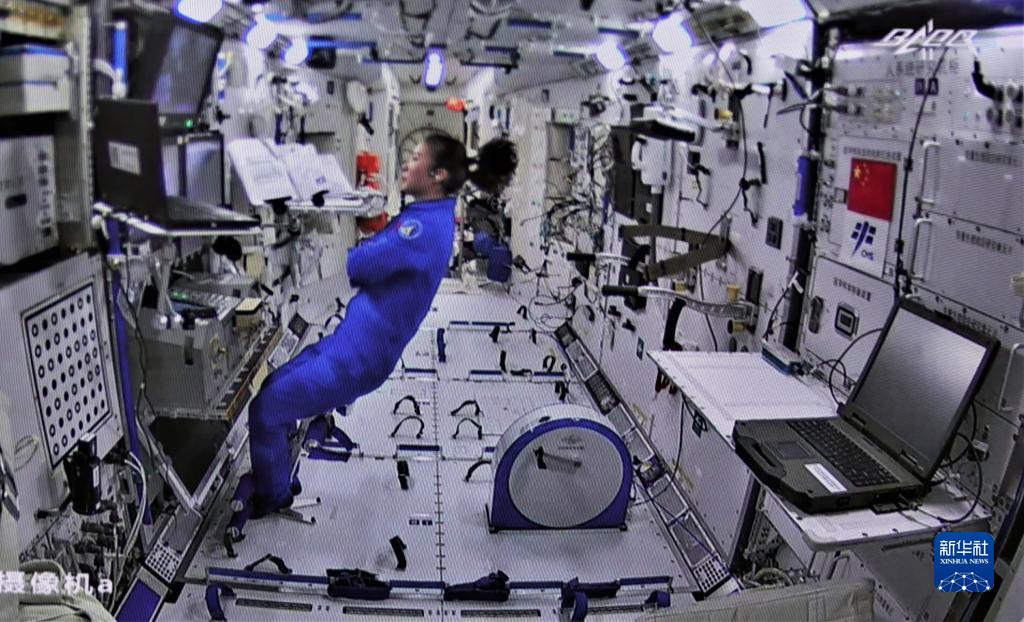 12月26日在北京航天飞行控制中心拍摄的神舟十三号航天员王亚平在核心舱内工作场景。新华社记者 郭中正 摄