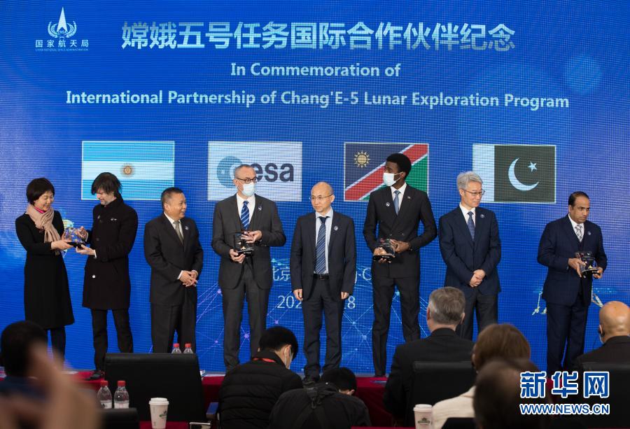 1月18日,在中科院国家天文台,中方向嫦娥五号国际合作伙伴颁发纪念牌。