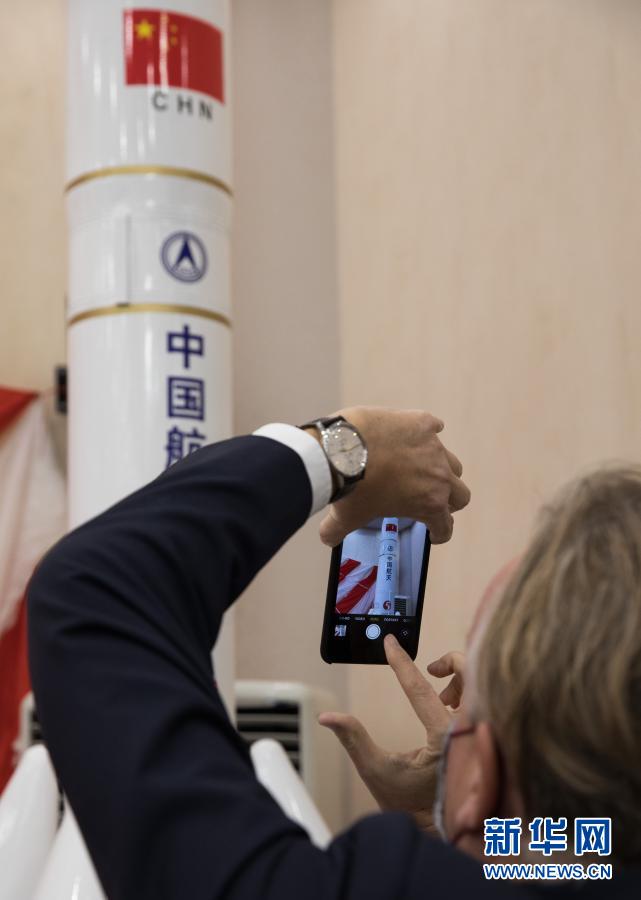 1月18日,外国驻华使馆及国际组织人员在中科院国家天文台参观了解嫦娥五号任务航天器模型和实物。