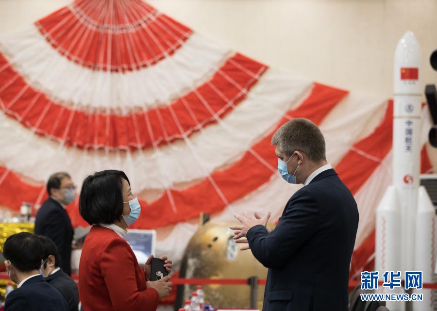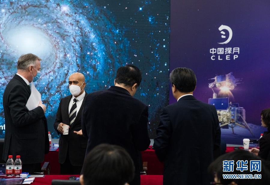1月18日,外国驻华使馆及国际组织人员在中科院国家天文台观看嫦娥五号任务视频。