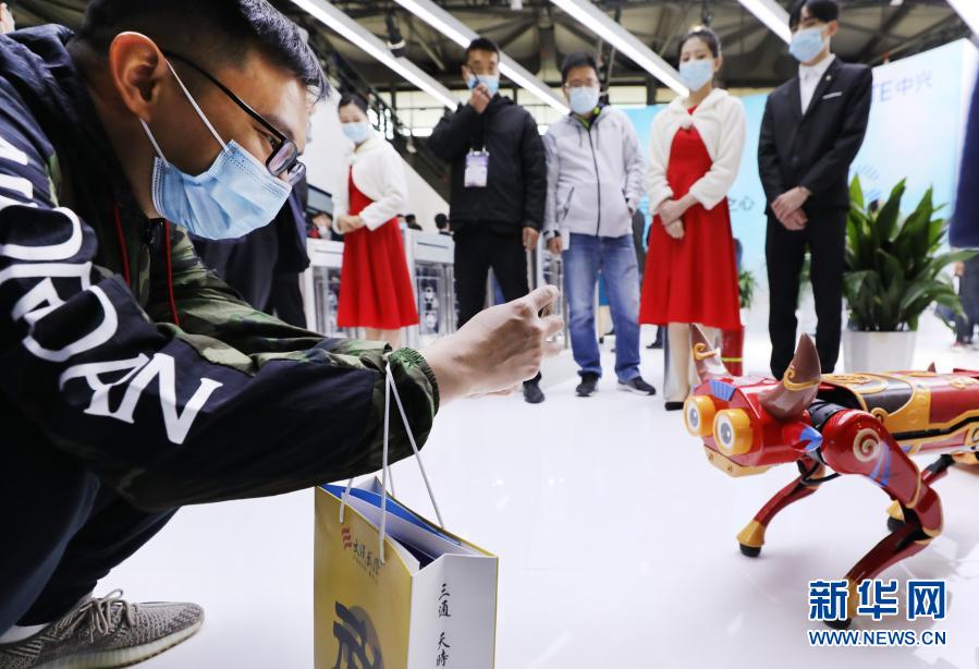 2月23日,参观者用手机拍摄一个进行动作演示的四足机器人。当日,以“和合共生”为主题的2021世界移动通信大会上海展在上海新国际博览中心拉开帷幕。近200家国内外展商集中呈现人工智能、物联网、智能家居等领域的5G创新产品,展现5G在技术创新、应用场景探索、跨界合作和投资方面的发展与实践。新华社记者 方喆 摄