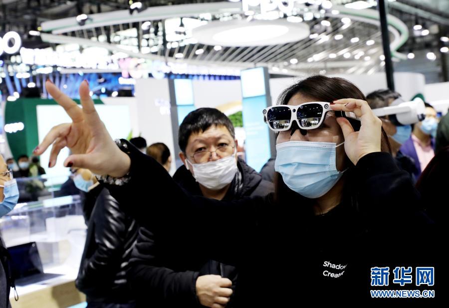 2月23日,参观者在展会现场试用一款智能眼镜。当日,以“和合共生”为主题的2021世界移动通信大会上海展在上海新国际博览中心拉开帷幕。近200家国内外展商集中呈现人工智能、物联网、智能家居等领域的5G创新产品,展现5G在技术创新、应用场景探索、跨界合作和投资方面的发展与实践。新华社记者 方喆 摄