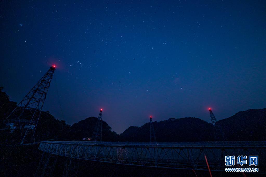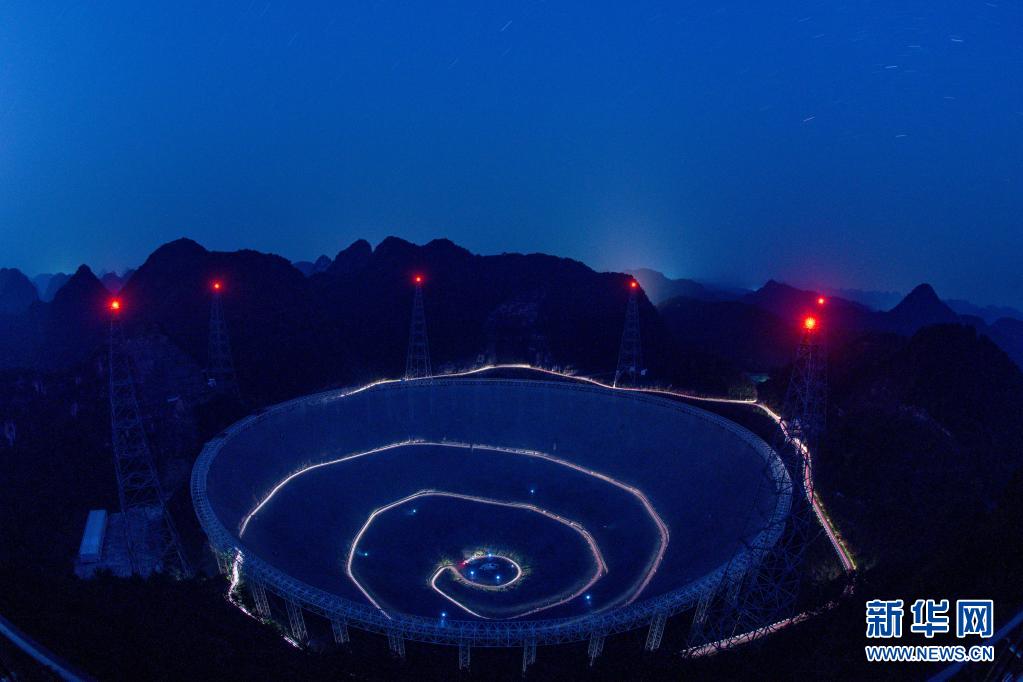 3月29日拍摄的夜幕下的“中国天眼”(维护保养期间拍摄)。