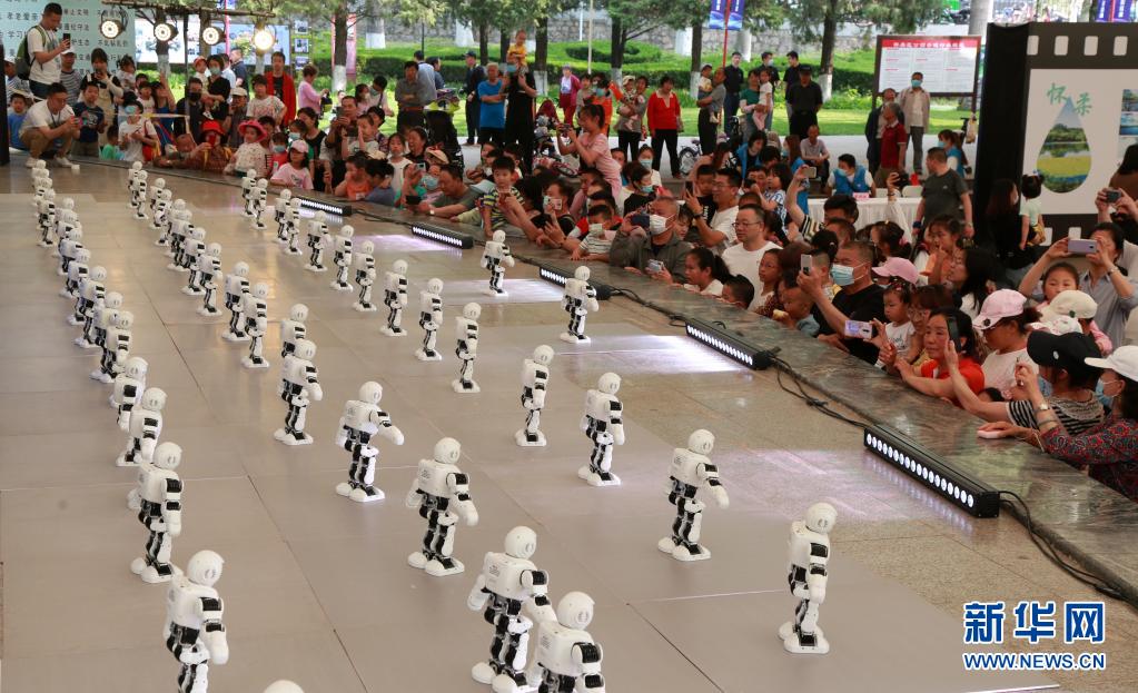 5月22日,北京市怀柔区科技活动周开启,市民在活动现场观看机器人表演。